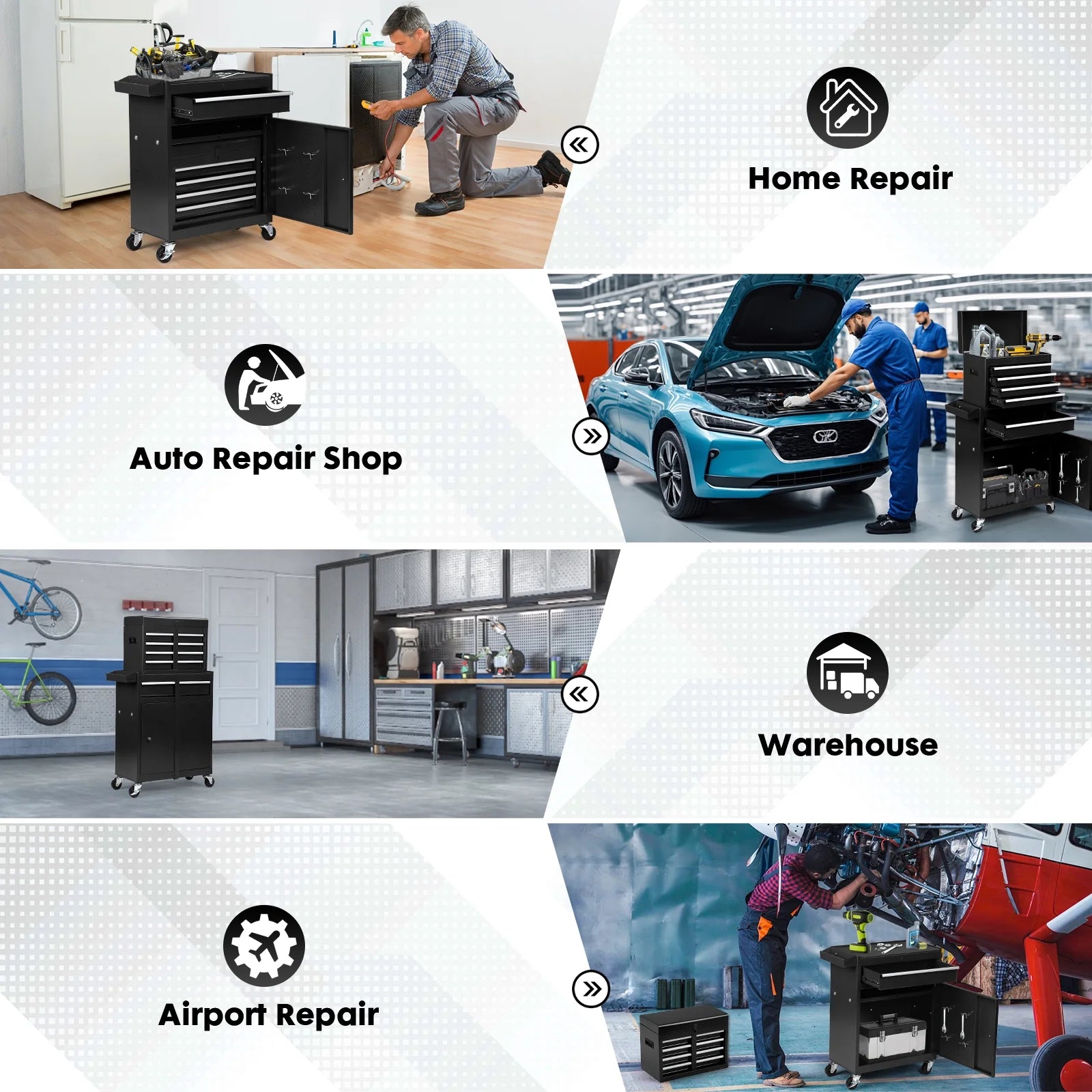 5-Drawer Rolling Tool Chest with Detachable Box, Lockable Wheels & 4 Hooks, Black