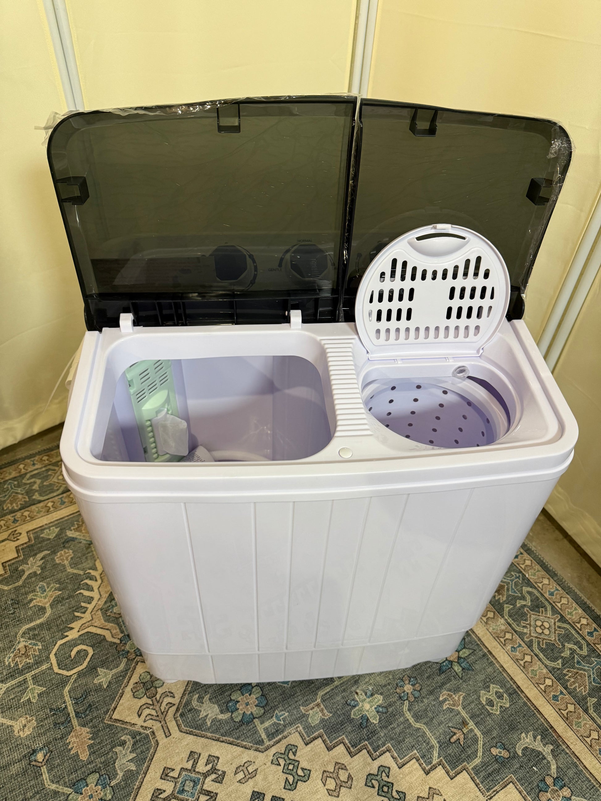 - TWIN TUB & 17.6 LBS CAPACITY - Our twin tub washing machine and dryer offers a dual-action solution for washing and drying, saving time with its 11 lbs washing capacity and 6.6 lbs spin capacity. The transparent cover of the washer lets you monitor the process, while the high-density plastic, aluminum pump, and upgraded motor ensure this machine is durable.