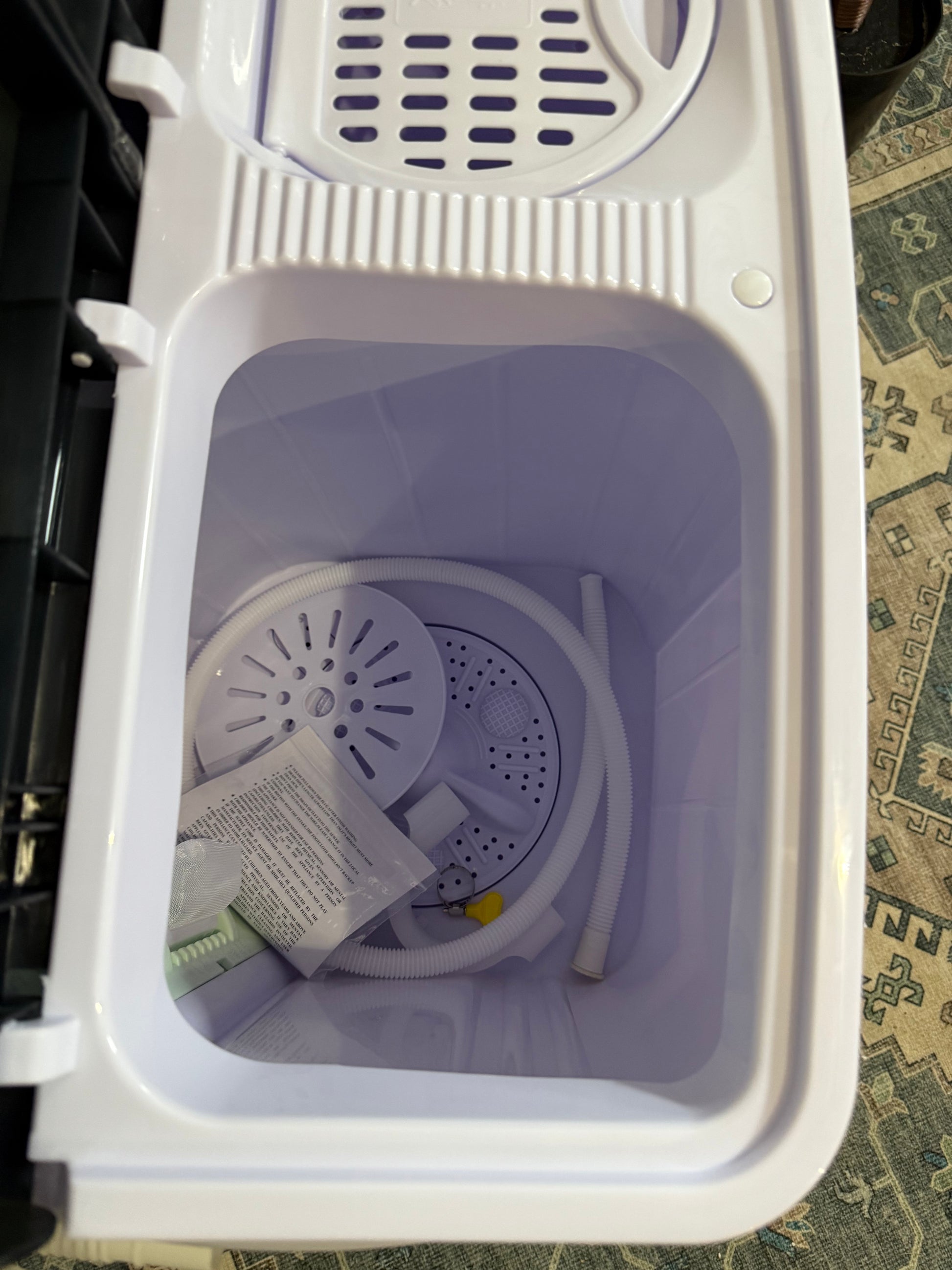 - EASY TO OPERATE - Ready to use out of the box, with three wash modes to choose from. Just load clothes, add detergent and water, set the timer, and start. The built-in pump and filter of this lavadora portátil make for efficient water discharge and cleaning.