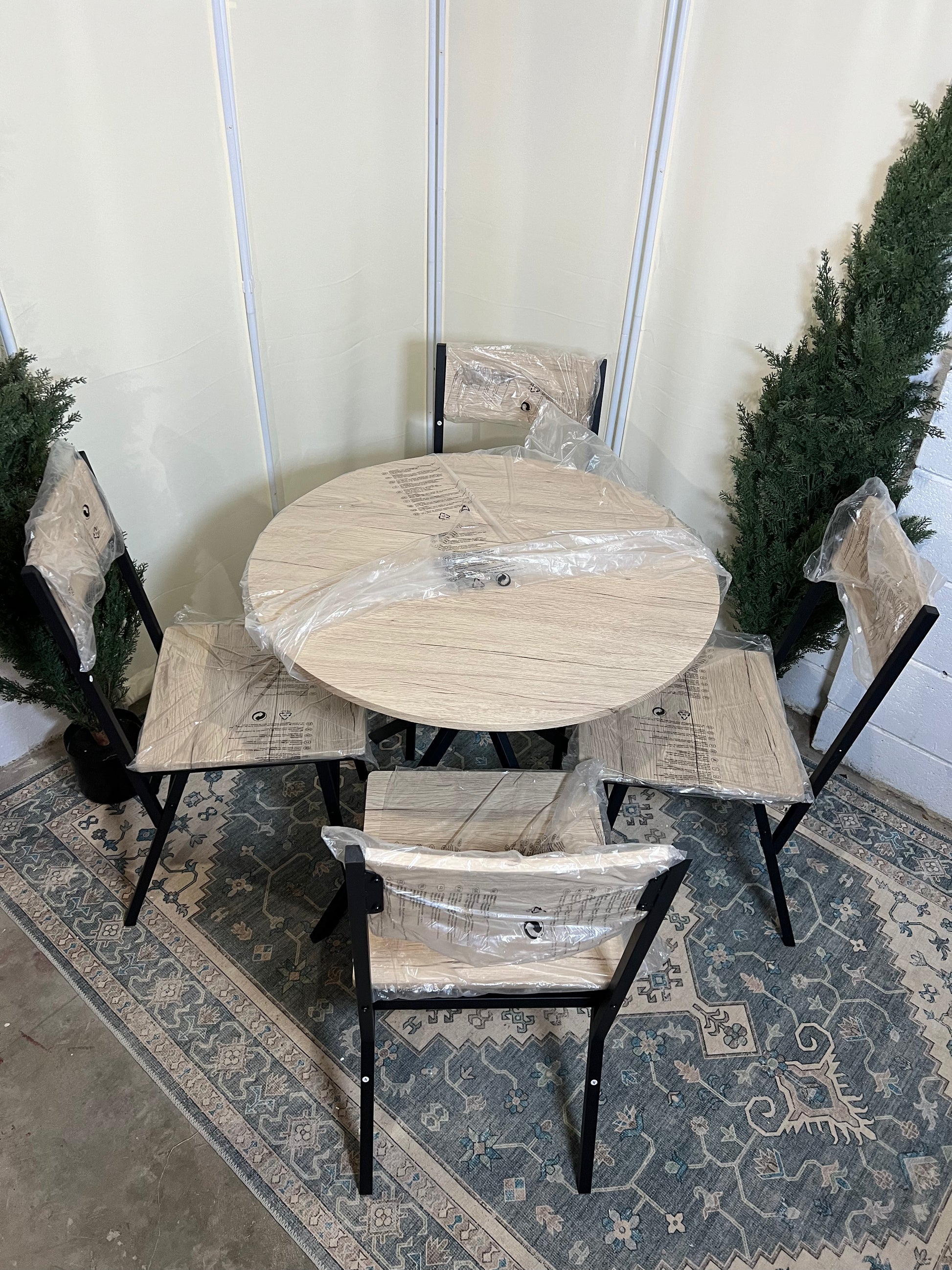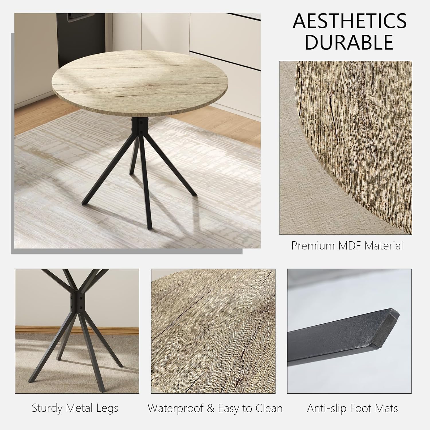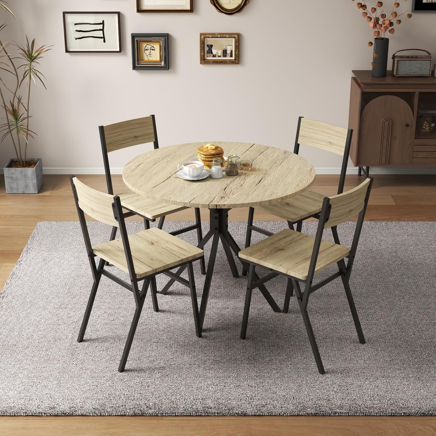 Our round kitchen table set is simple and stylish, with unique wood grains and sleek lines that add a modern and sleek look to your space. Compact and space-saving, this dining table for 4 with chairs is ideal for small spaces such as apartment, kitchen, and living room.