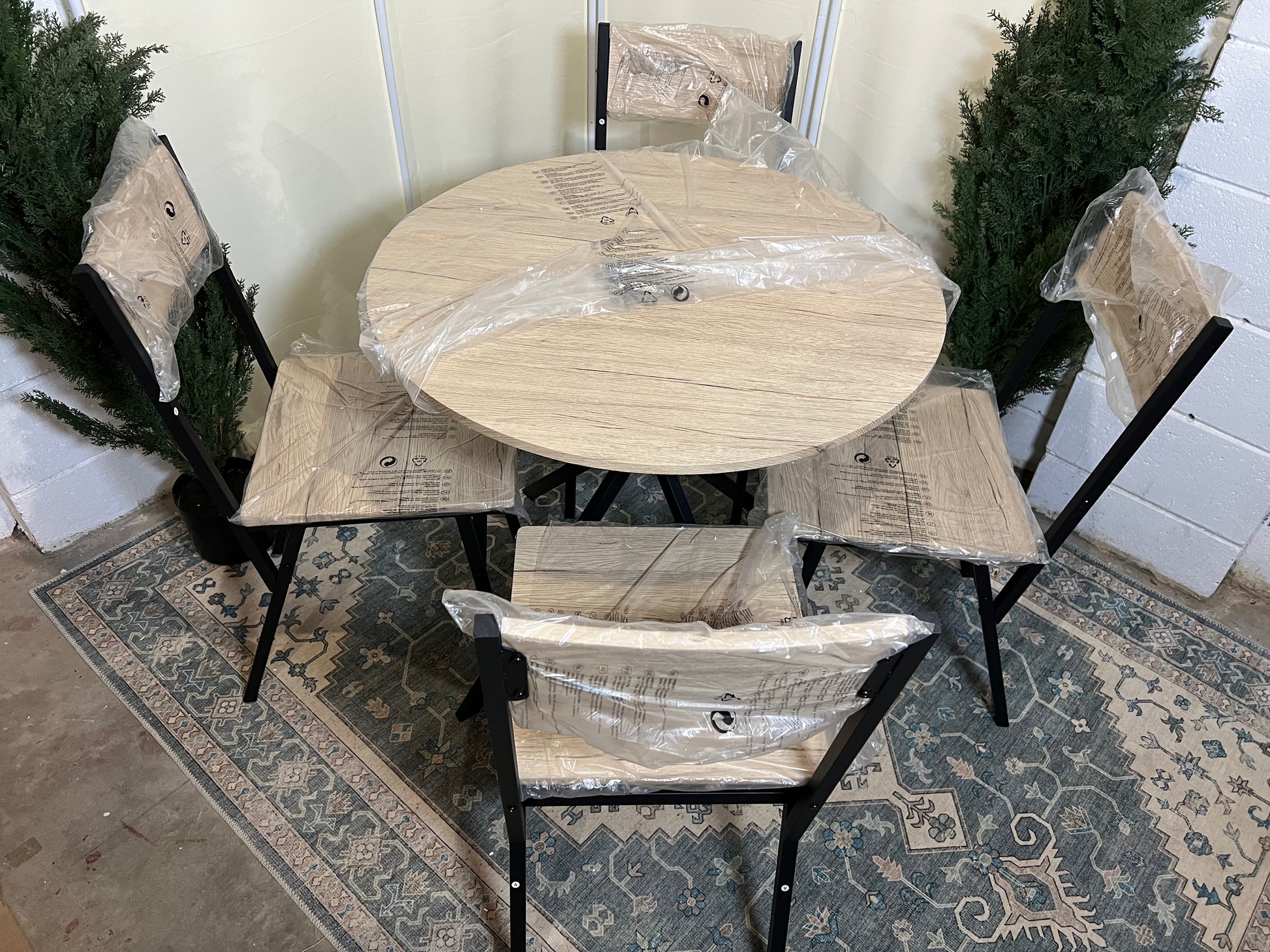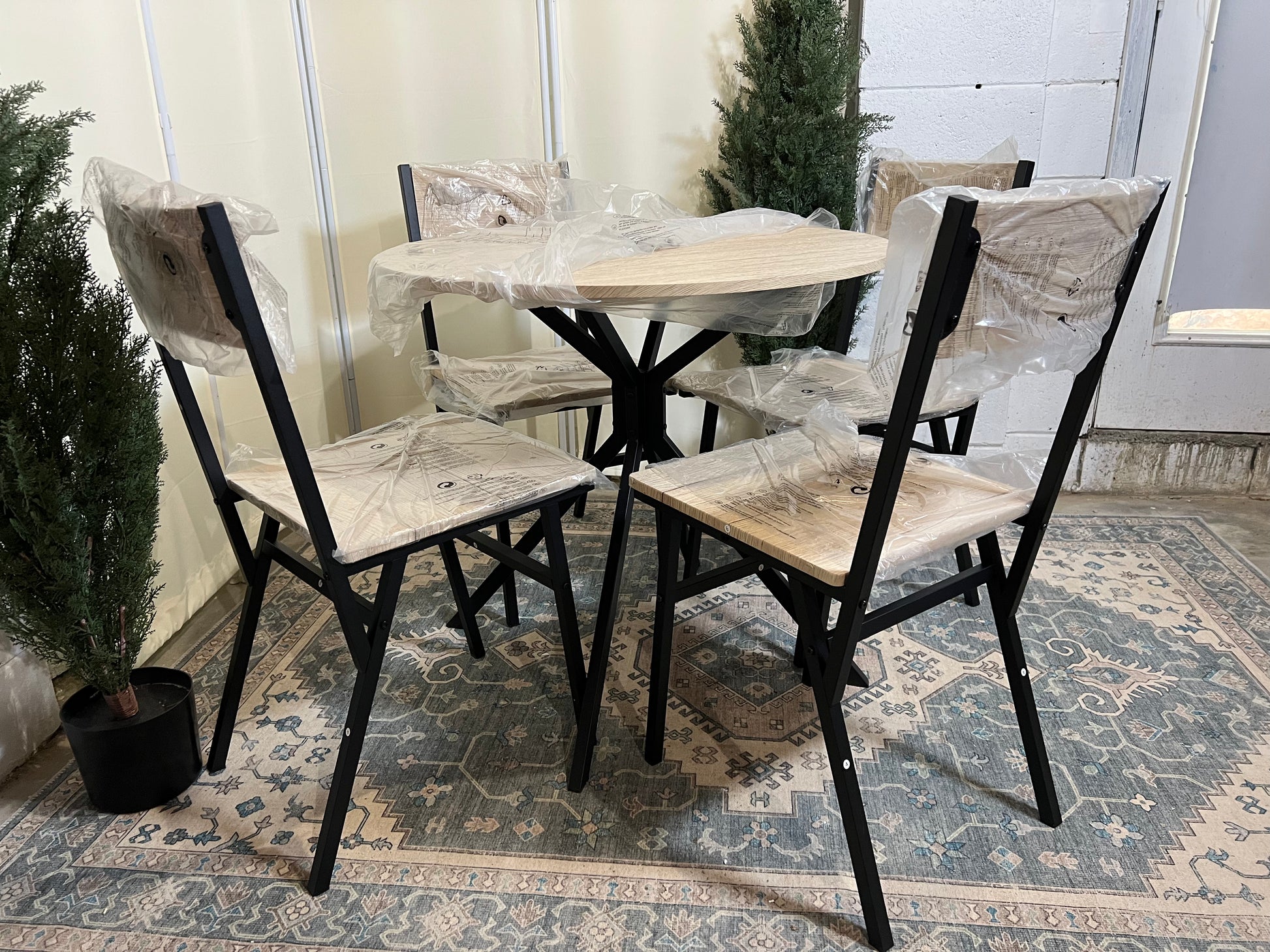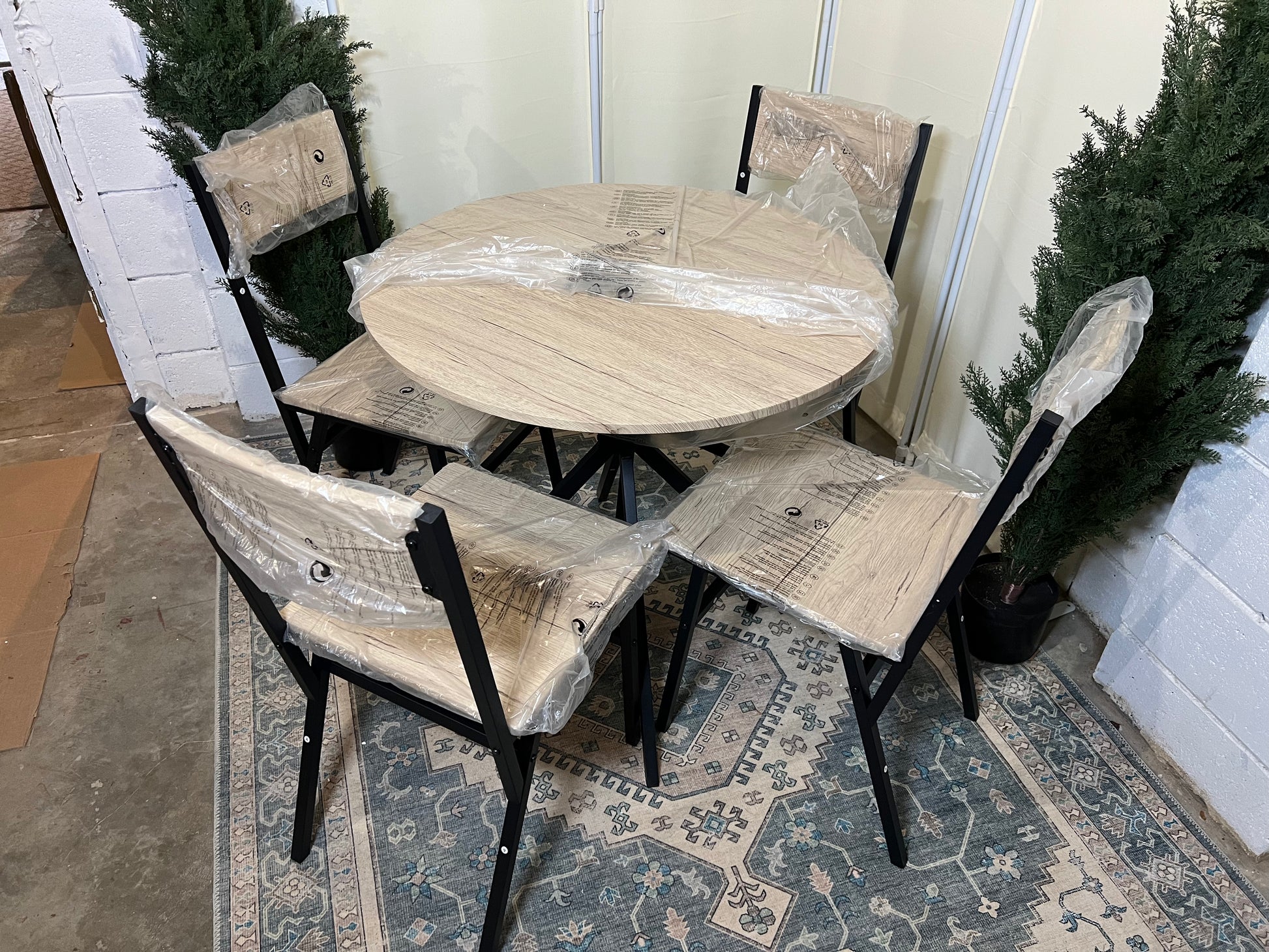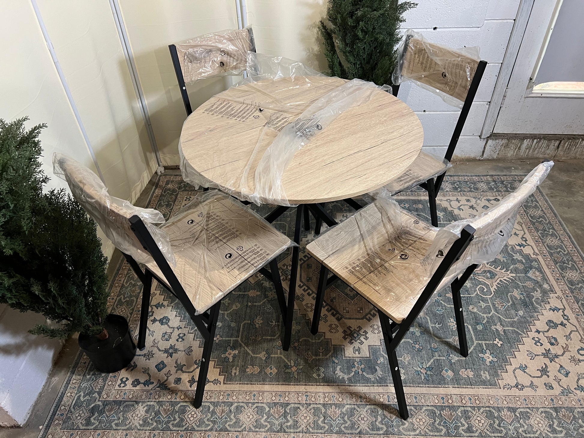 Our round kitchen table set is simple and stylish, with unique wood grains and sleek lines that add a modern and sleek look to your space. Compact and space-saving, this dining table for 4 with chairs is ideal for small spaces such as apartment, kitchen, and living room.