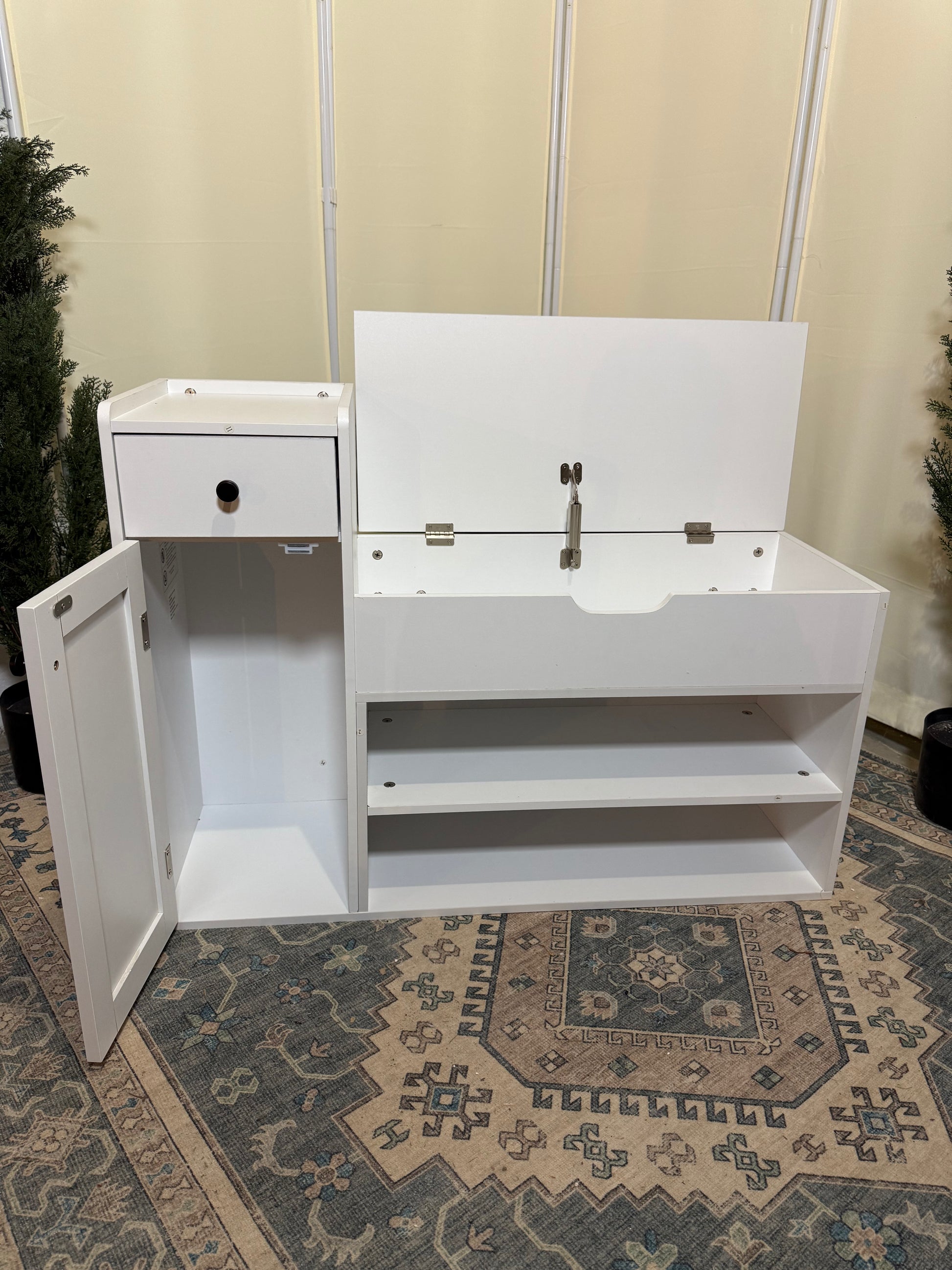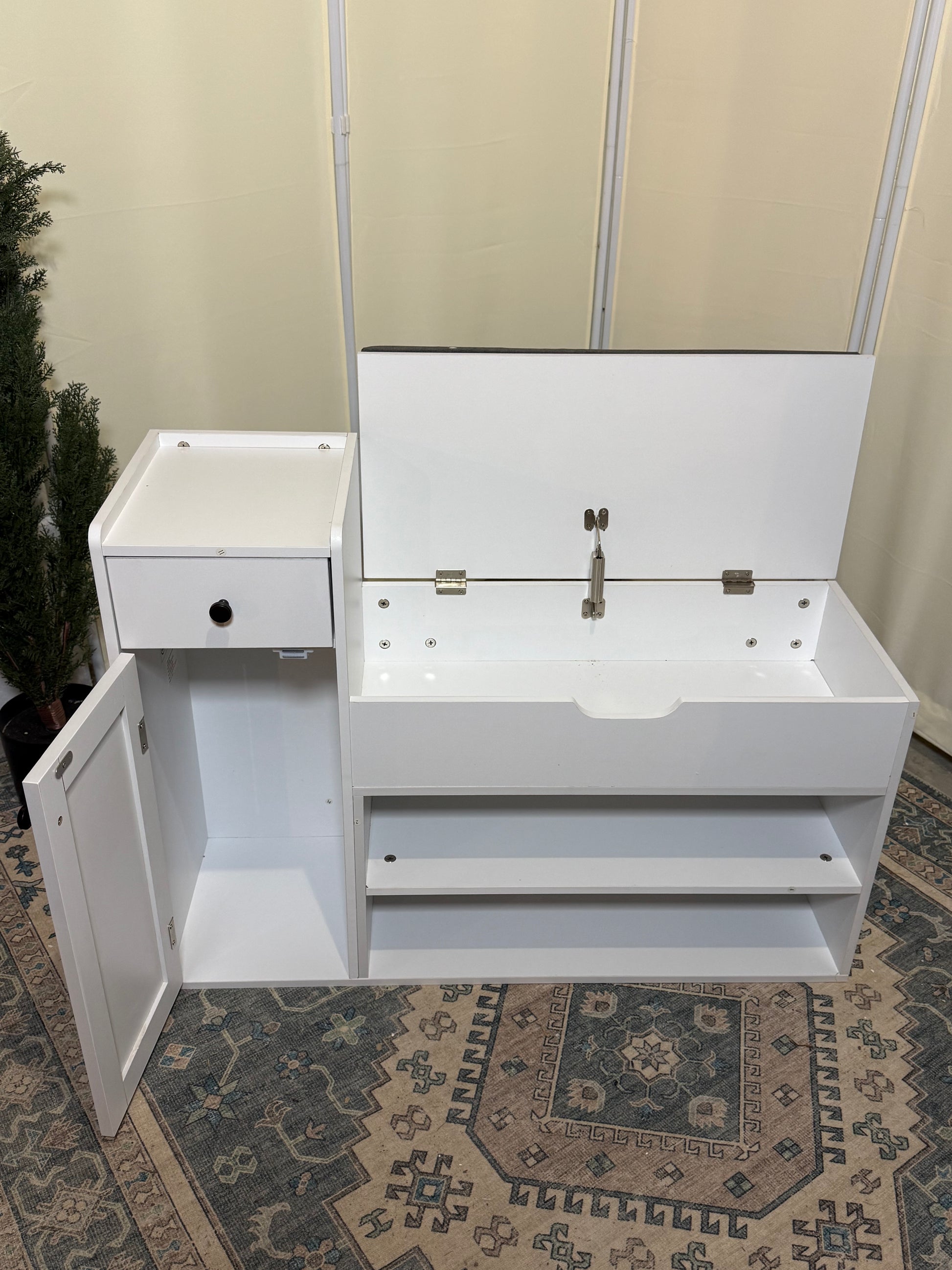 - Feature with dual-tier shoe rack, 19.21"H shoe cabinet, lift-Top storage and a drawer