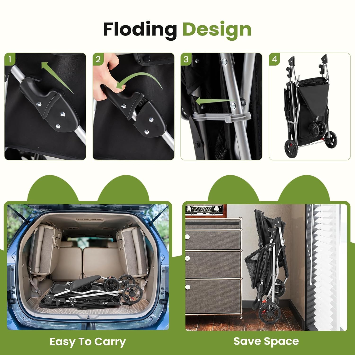 Small Pet Stroller | Lightweight & Foldable Design | Comfortable, Easy-Ride Pet Carrier for Dogs & Cats | Black