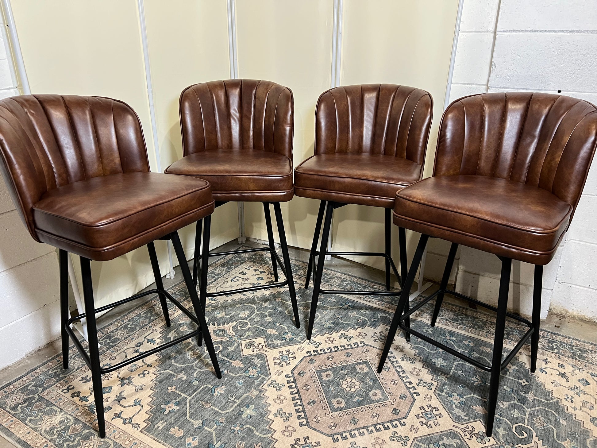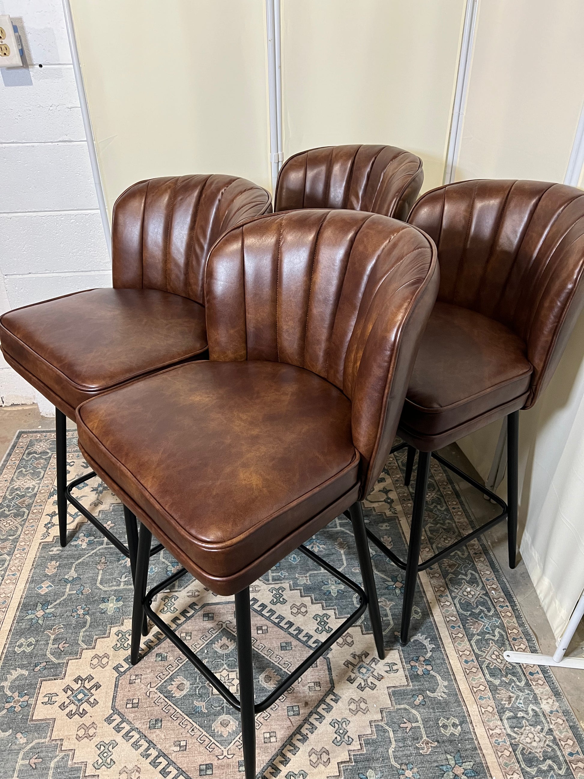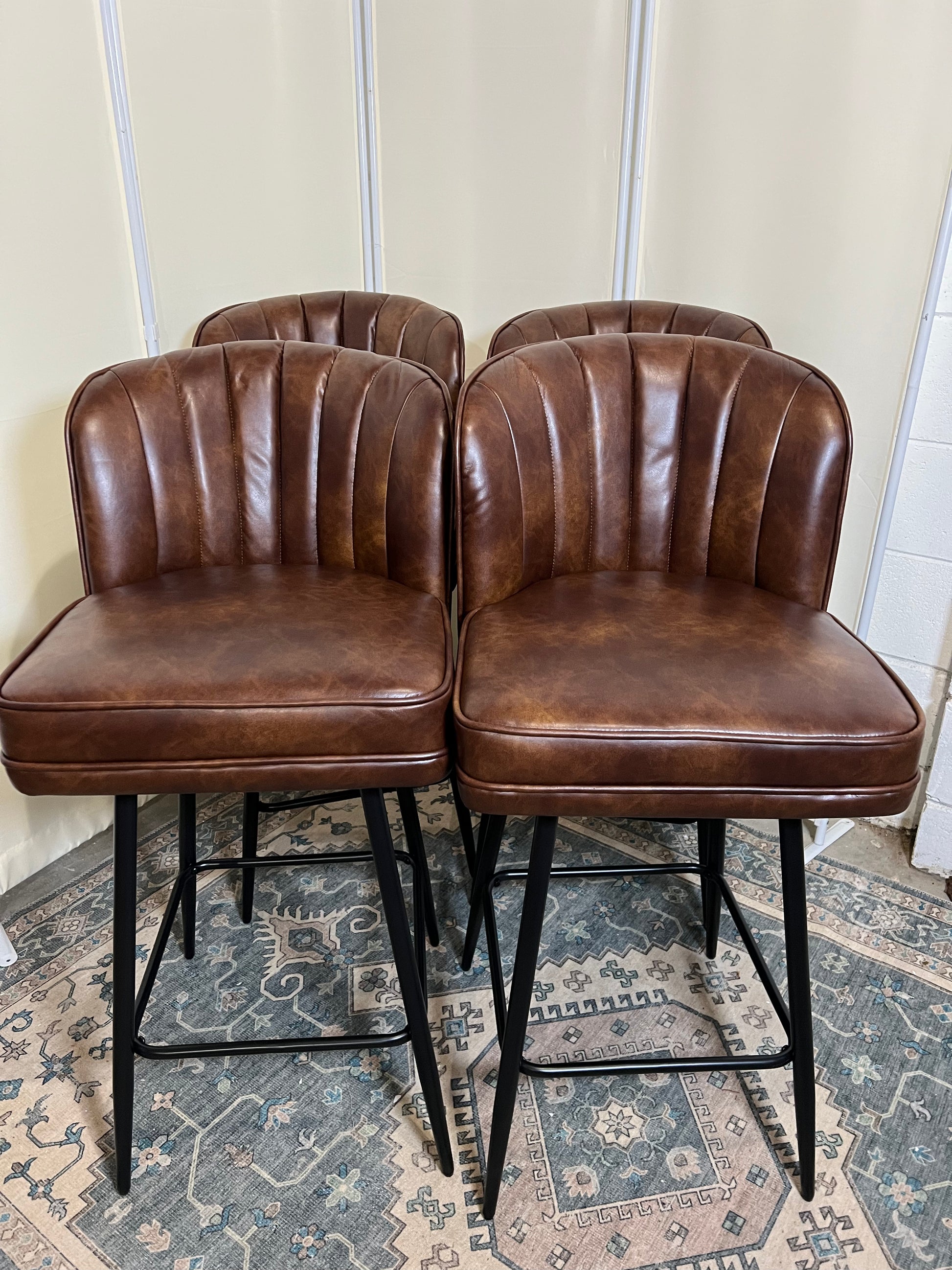 Swivel Counter Height Bar Stools Set of 4, 26'' Modern Barstools with Backs and Metal Legs, Upholstered Bar Chairs, Faux Leather Brown Stools for Kitchen Island Chairs