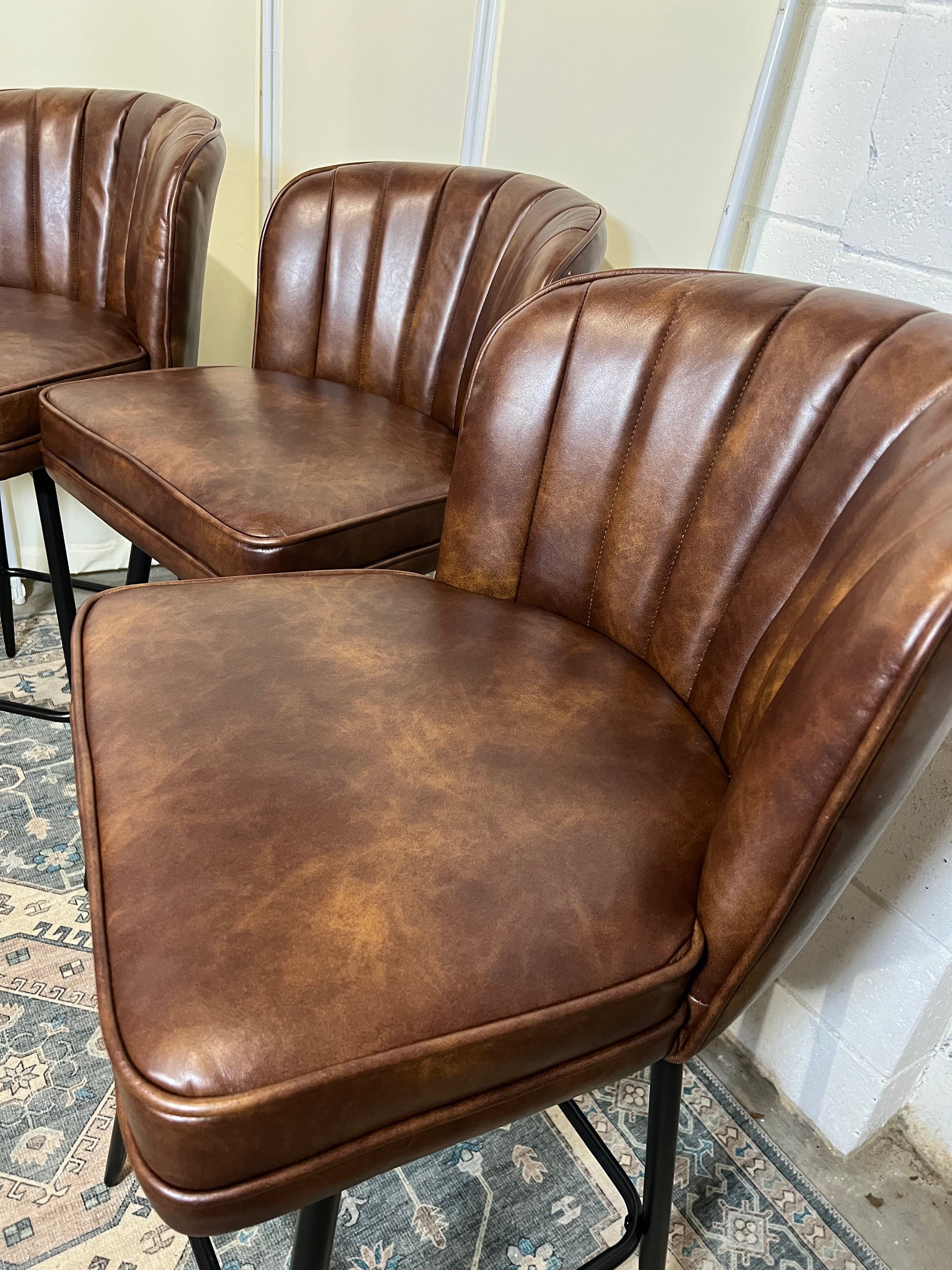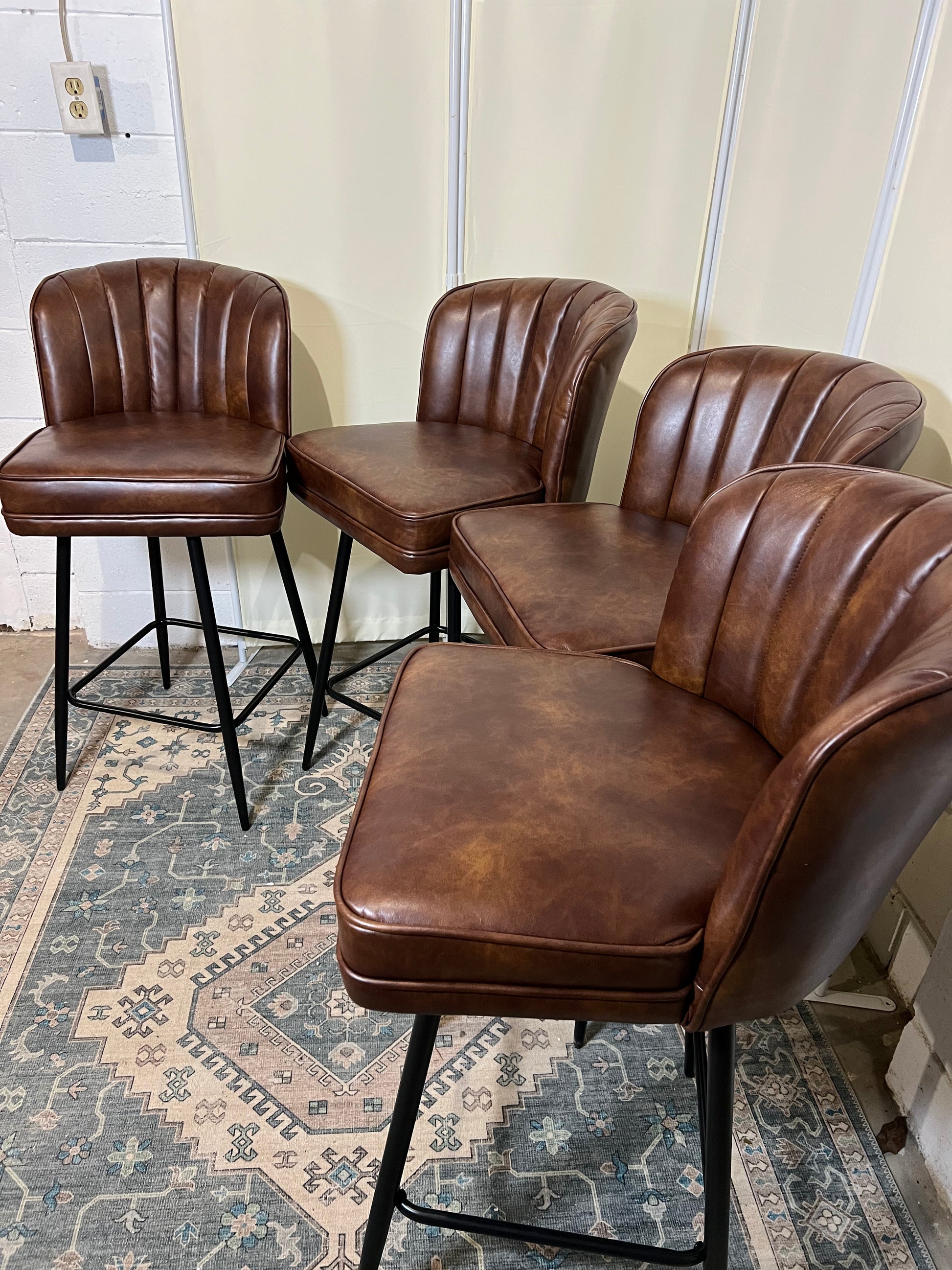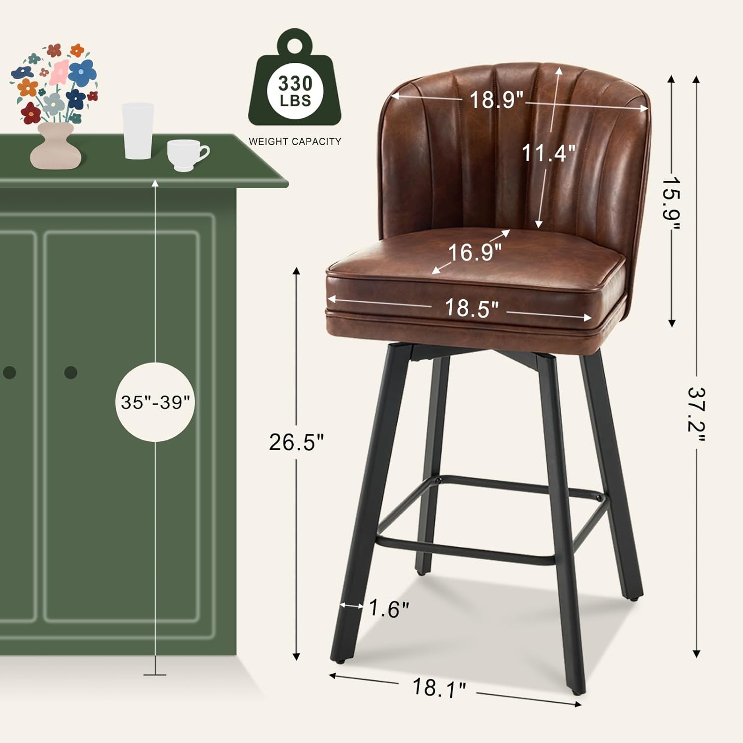 Swivel Counter Height Bar Stools Set of 4, 26'' Modern Barstools with Backs and Metal Legs, Upholstered Bar Chairs, Faux Leather Brown Stools for Kitchen Island Chairs