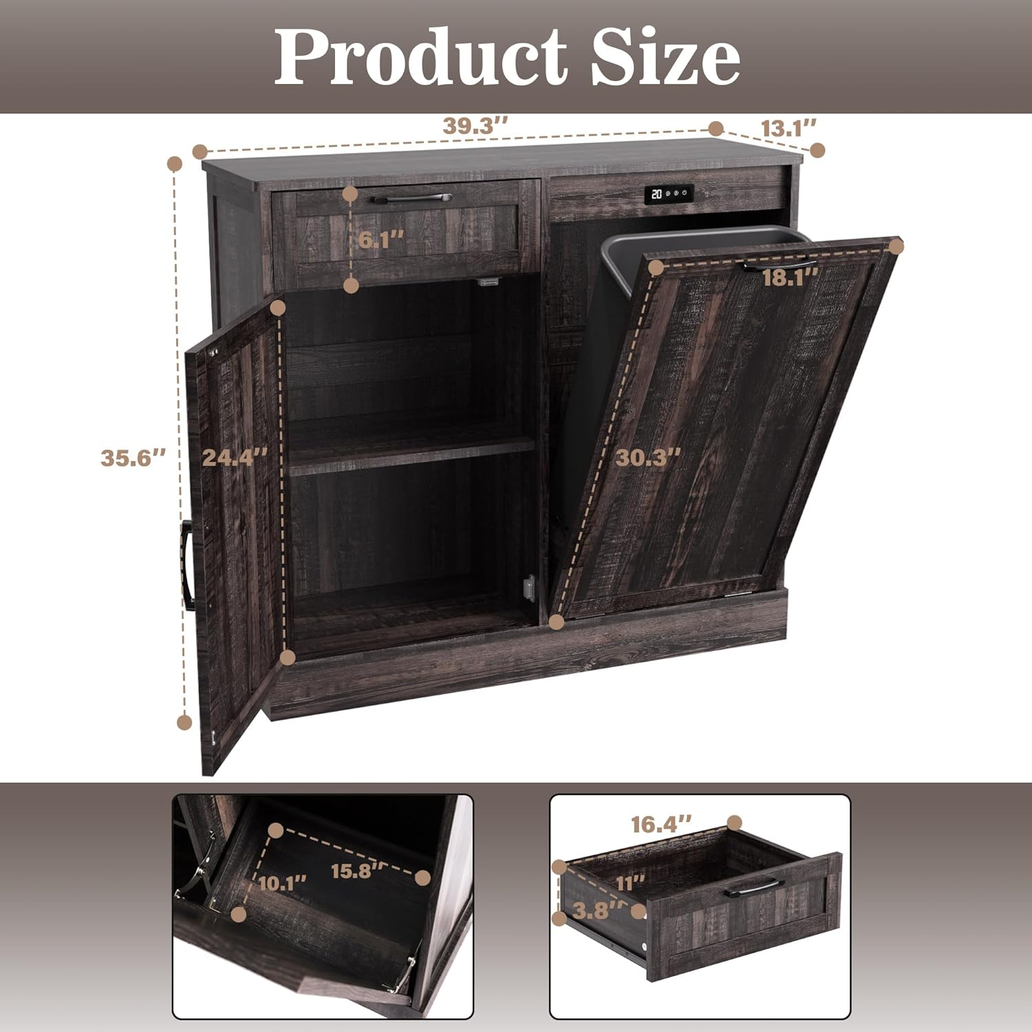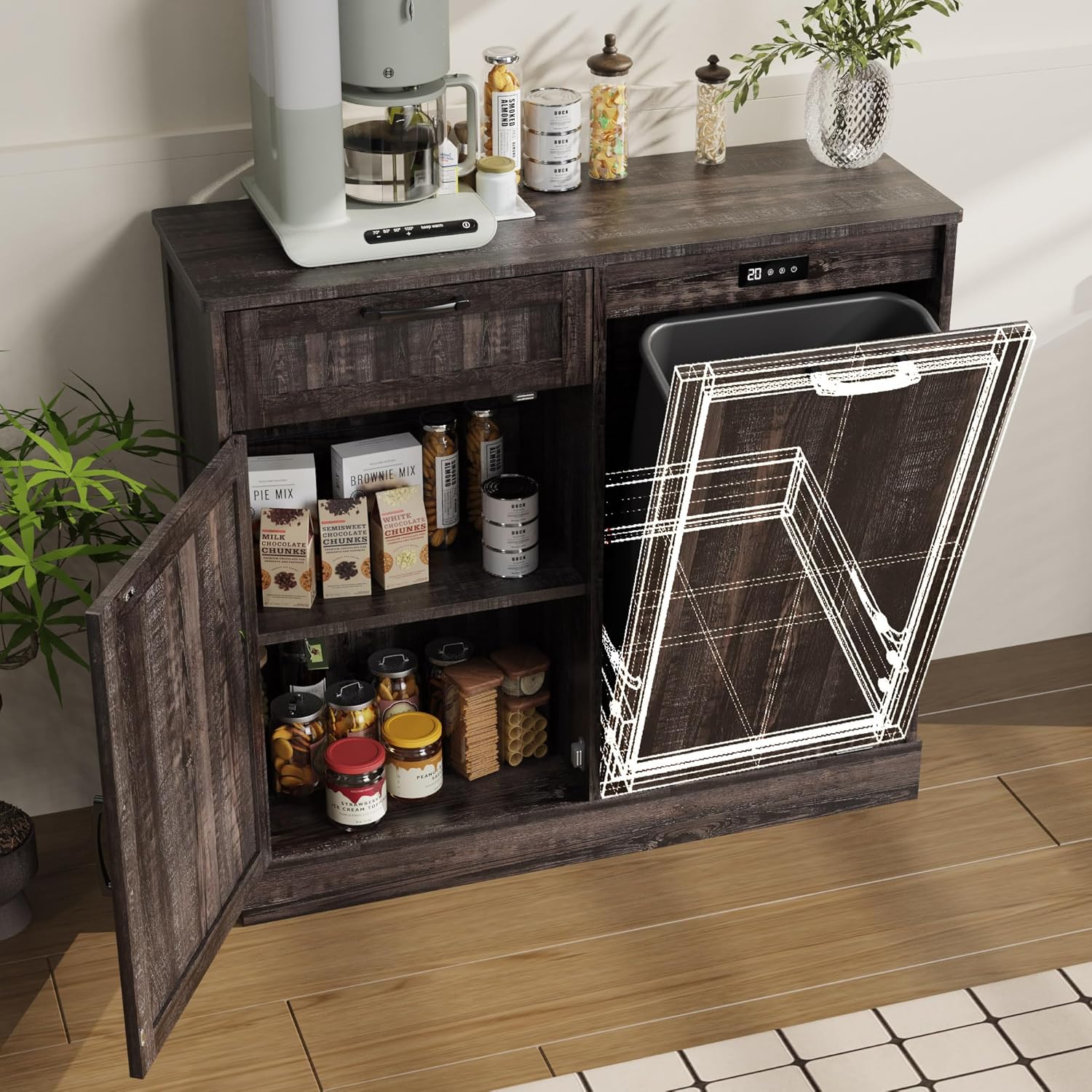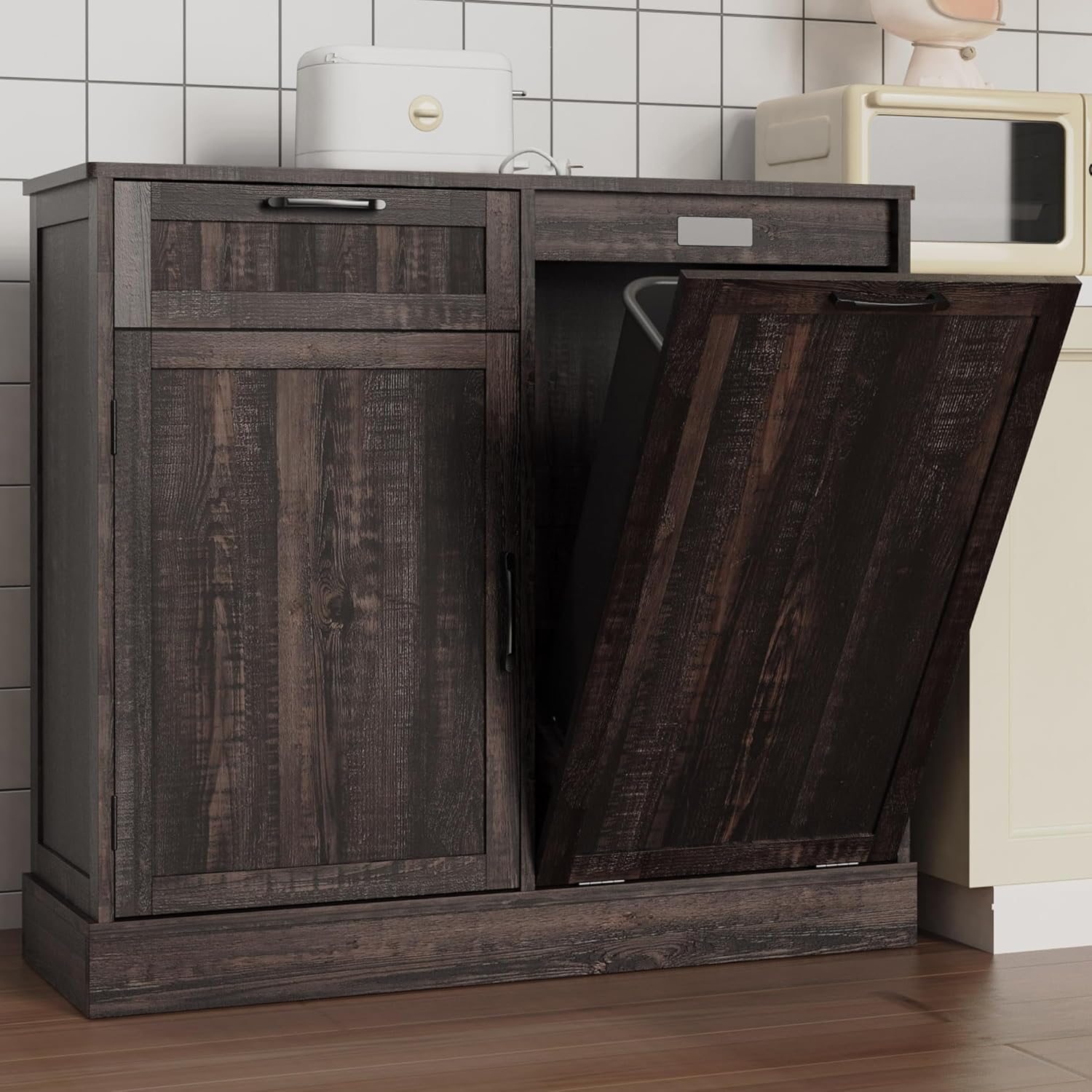 Tilt Out Trash Can Cabinet, Trash Can Cabinets with Deodorising Function, Pull Out Trash Storage Cabinet, Hidden Laundry Hamper Cabinets, Dog Proof Garbage Can for Kitchen (Black, 10 Gallon)