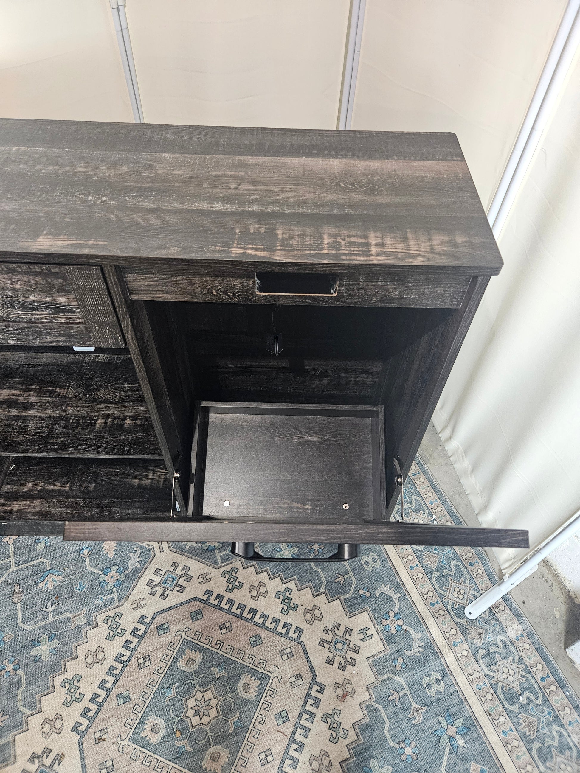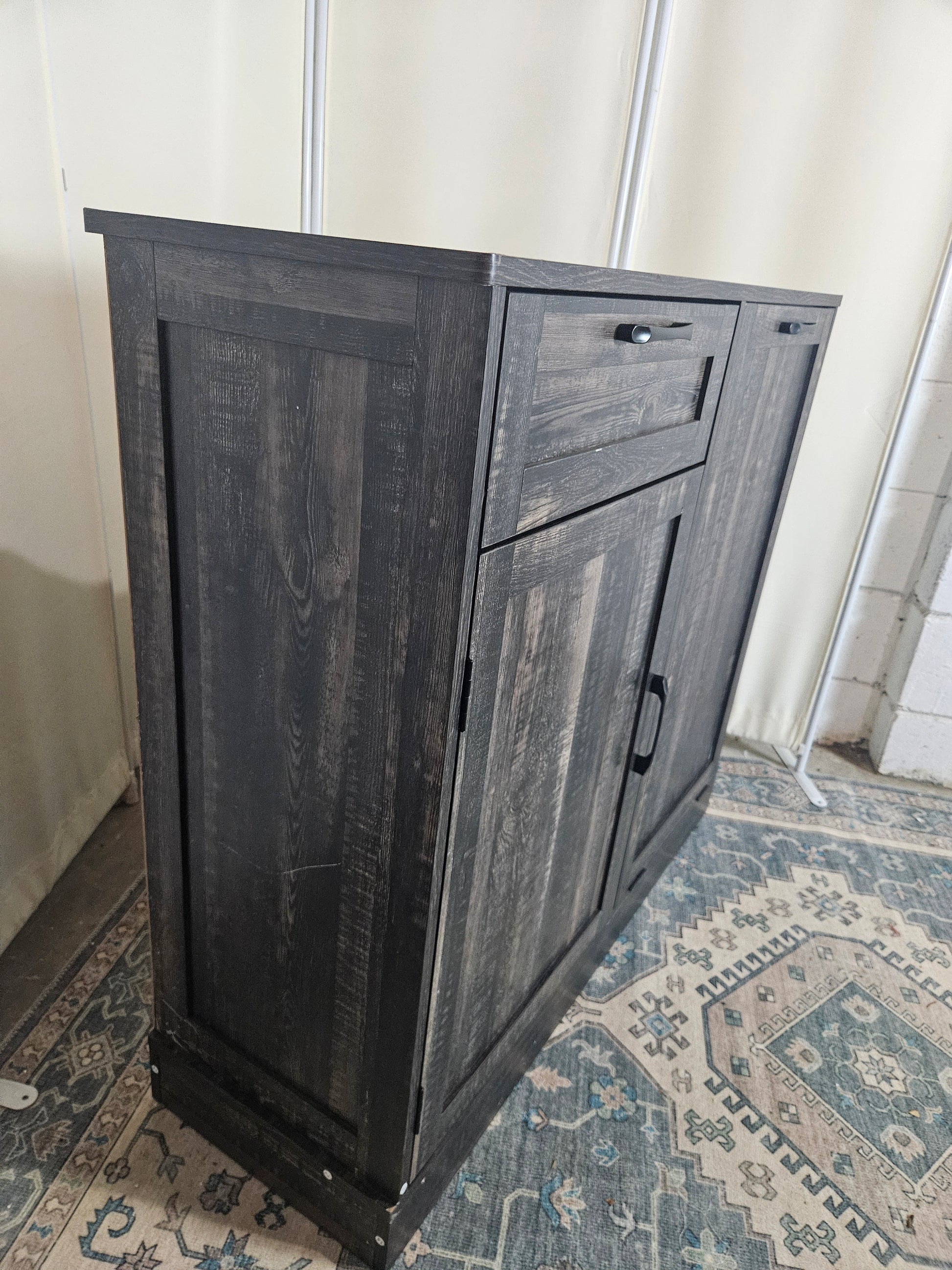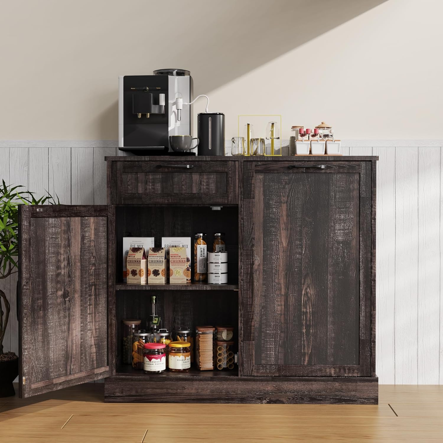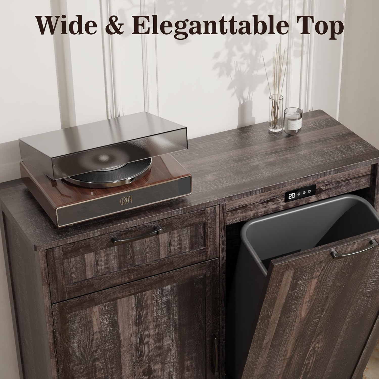 Tilt Out Trash Can Cabinet, Trash Can Cabinets with Deodorising Function, Pull Out Trash Storage Cabinet, Hidden Laundry Hamper Cabinets, Dog Proof Garbage Can for Kitchen (Black, 10 Gallon)