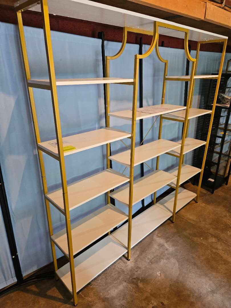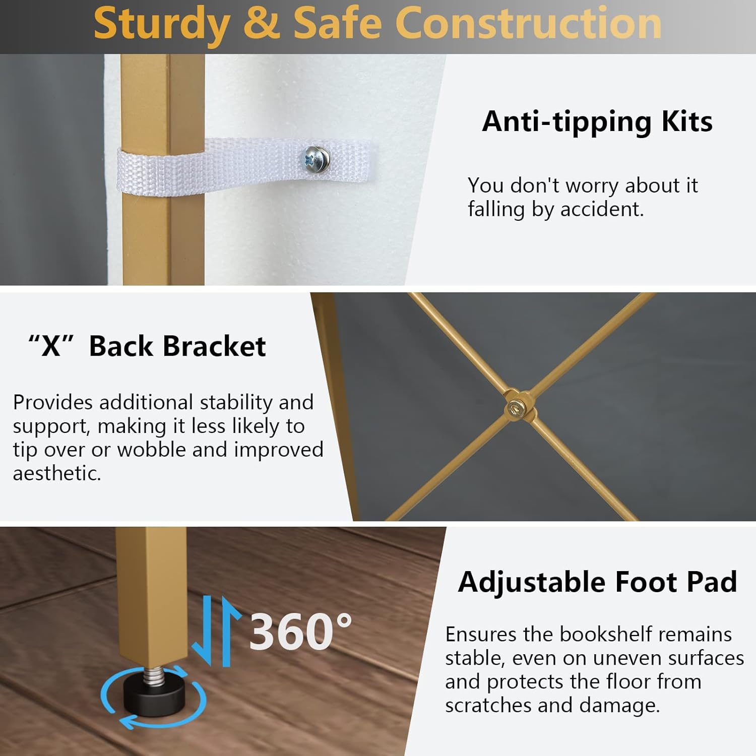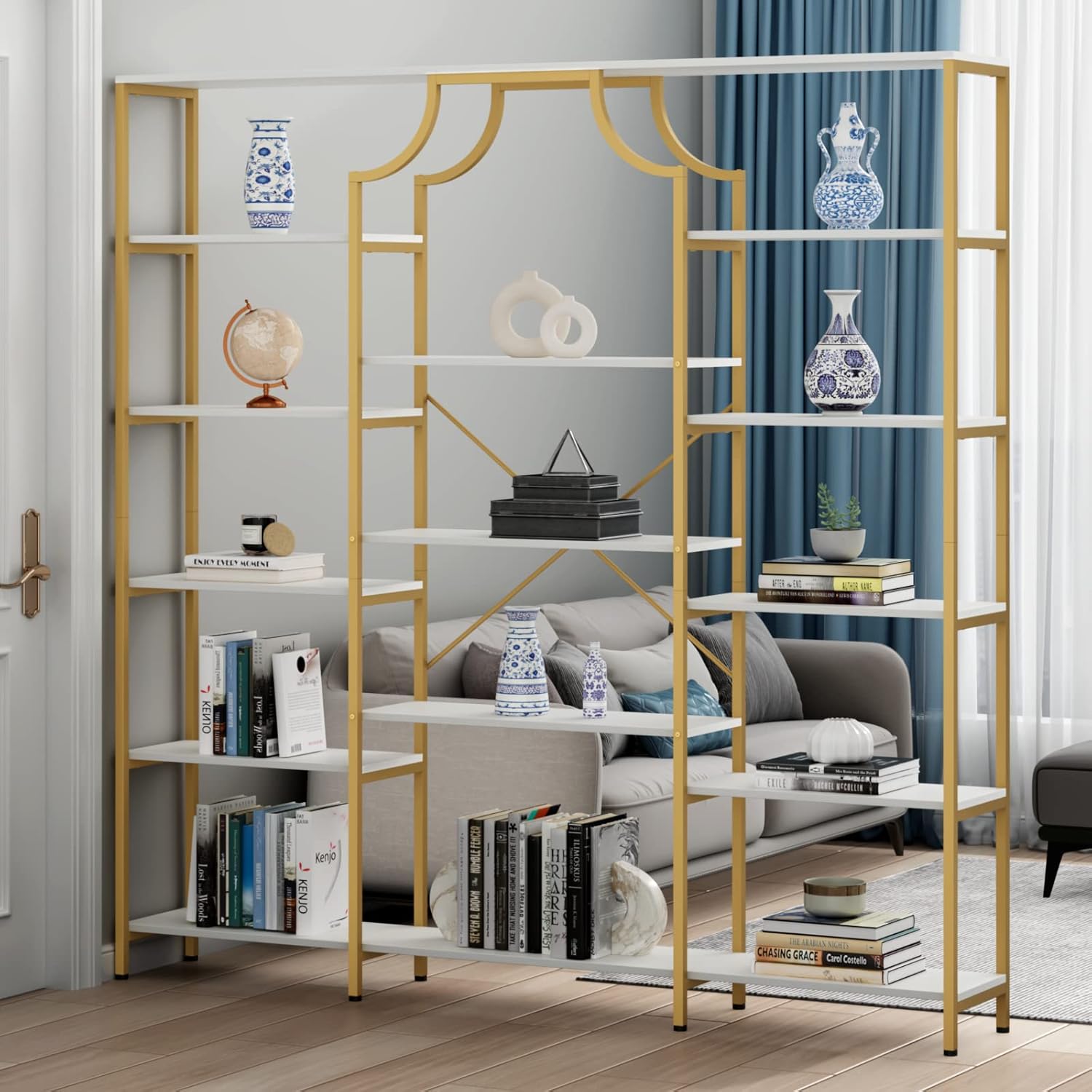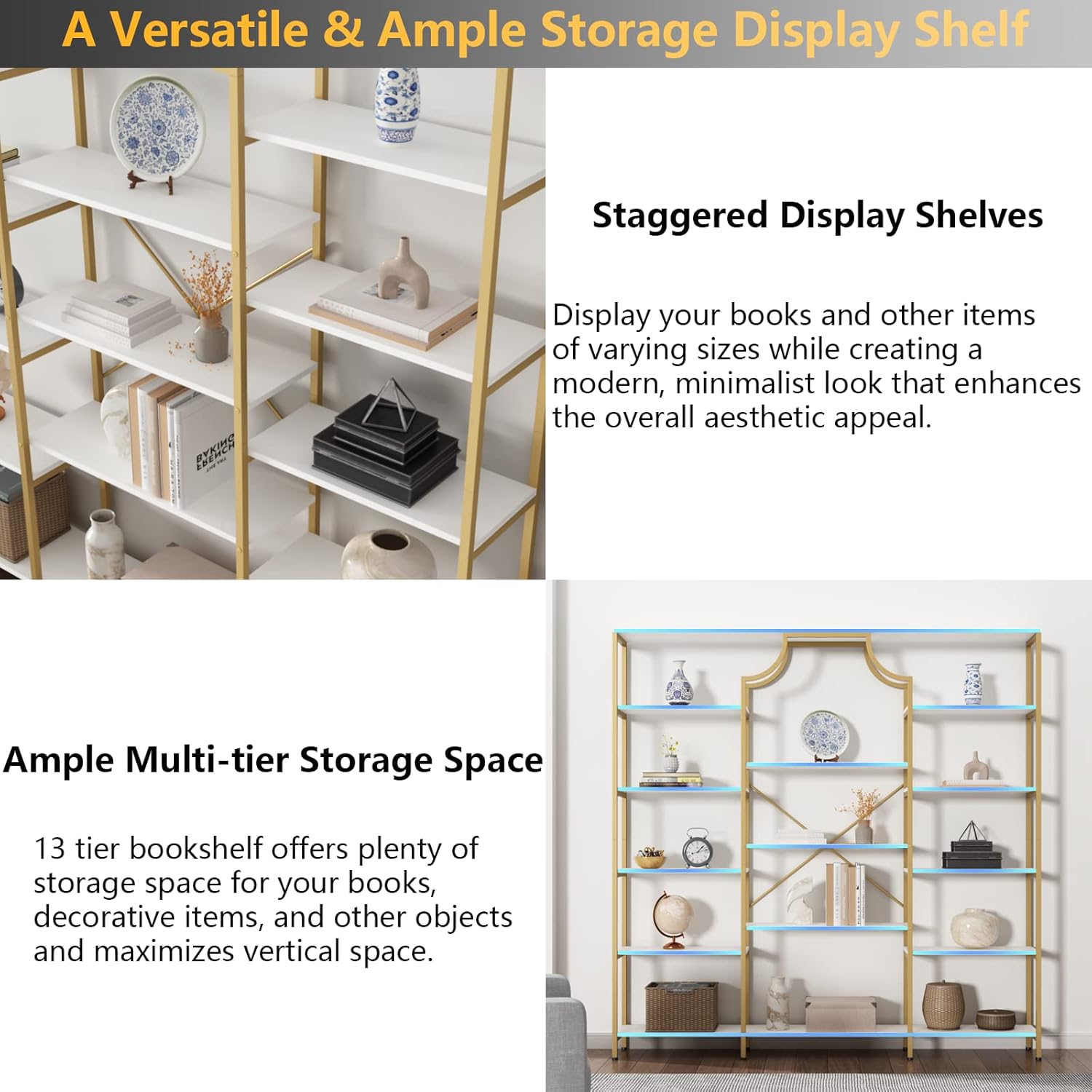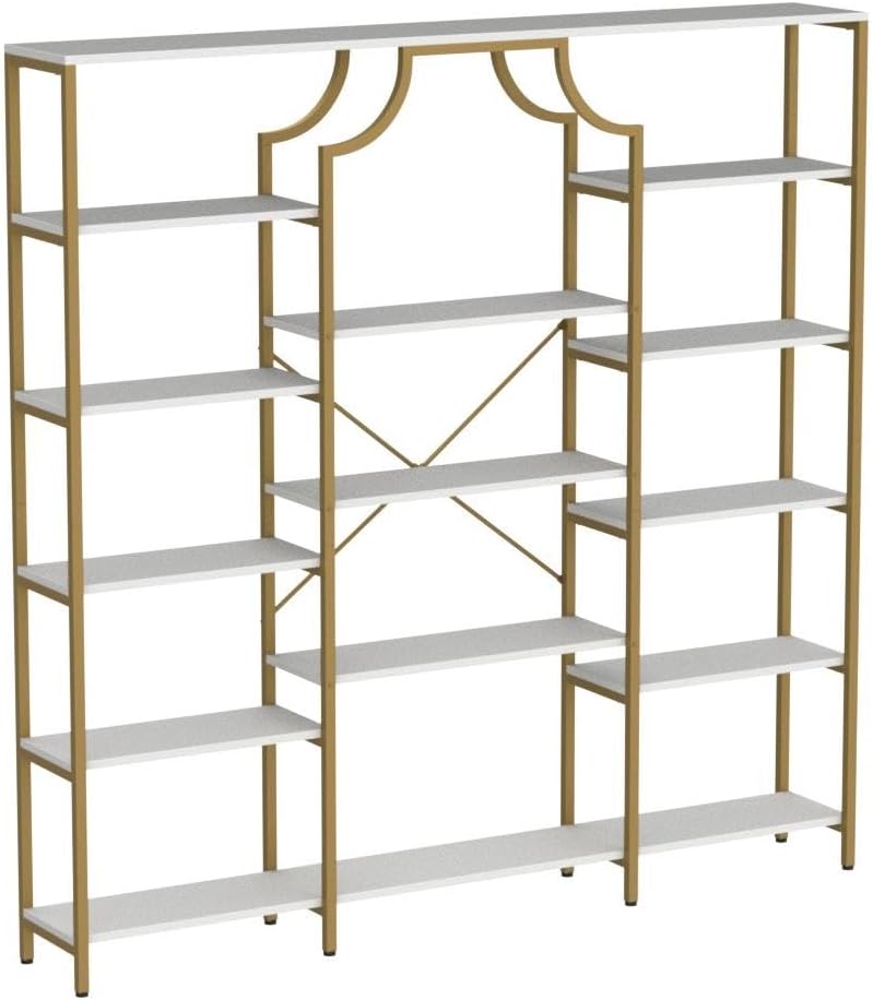 Triple Wide Bookshelf, 70.87" W/H Large Tall Etagere Bookcase, Modern 13-Open Shelves Geometric Bookshelf, Display Storage Metal Book Case, for Bedroom, Home Office & Living Room, Gold & White