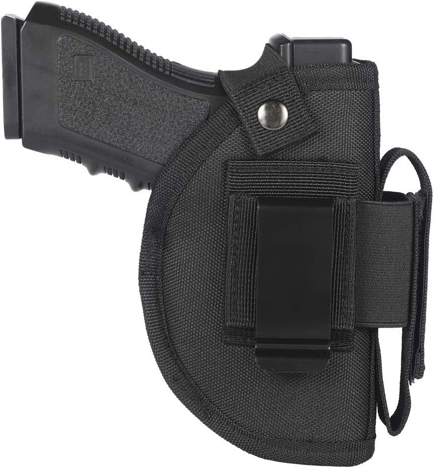 Concealed Carry Holster IWB OWB Car Holster with Magazine Slot and 2 Strap Mounts for Right and Left Hand Gun AccessoriesNaturally fit subcompact and compact handguns, Cut the thread to fit medium and large handguns.
