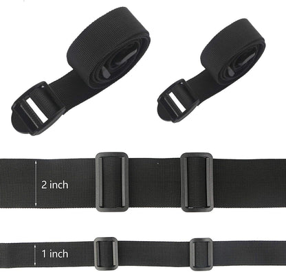 Both two strap mounts are 63 inches long, one is 1-inch wide, the other is 2-inch wide,each strap comes with 2 slides adjusters to help your holsters from sliding.