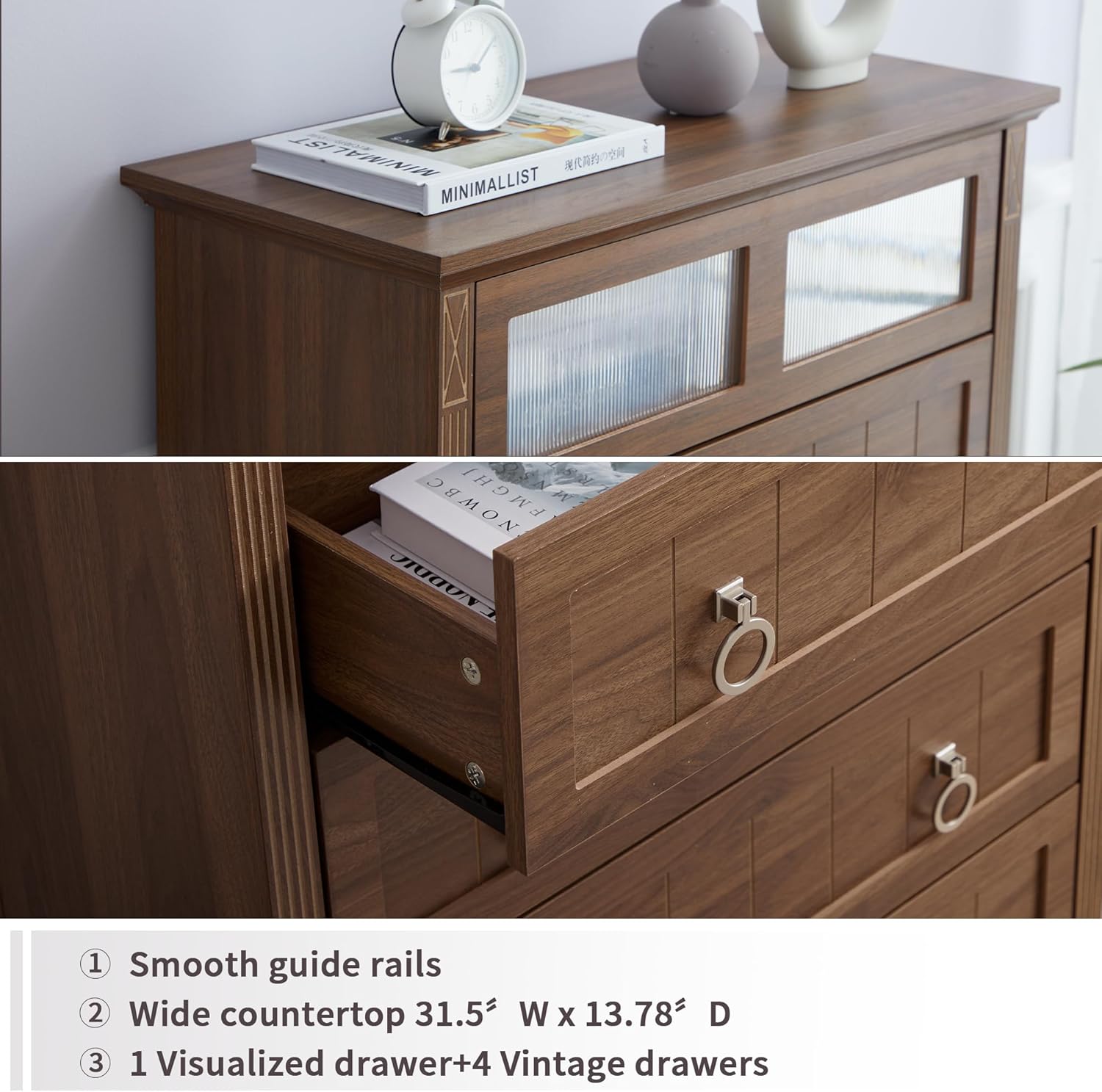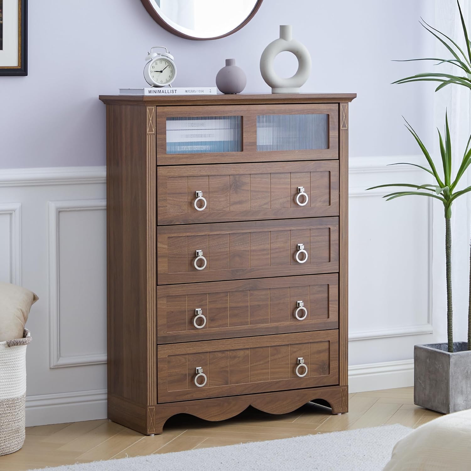 Vintage Style Wooden Chest of Drawers Storage Cabinet with Metal Ring Handles